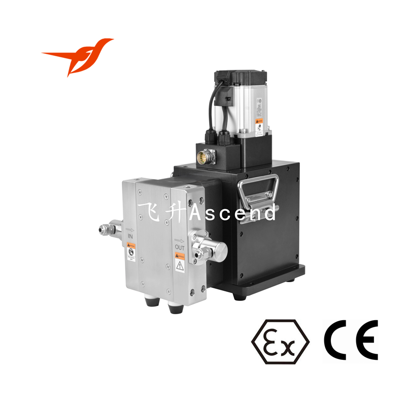廣州(zhōu)飛升FSH-CF恒流泵的特點在於:防(fáng)爆(bào)CE認證注液泵—德國TUV南德認證,安全可靠;高壓密封,無泄漏,不卡泵;高效率,150g/s;伺服閉環控(kòng)製。